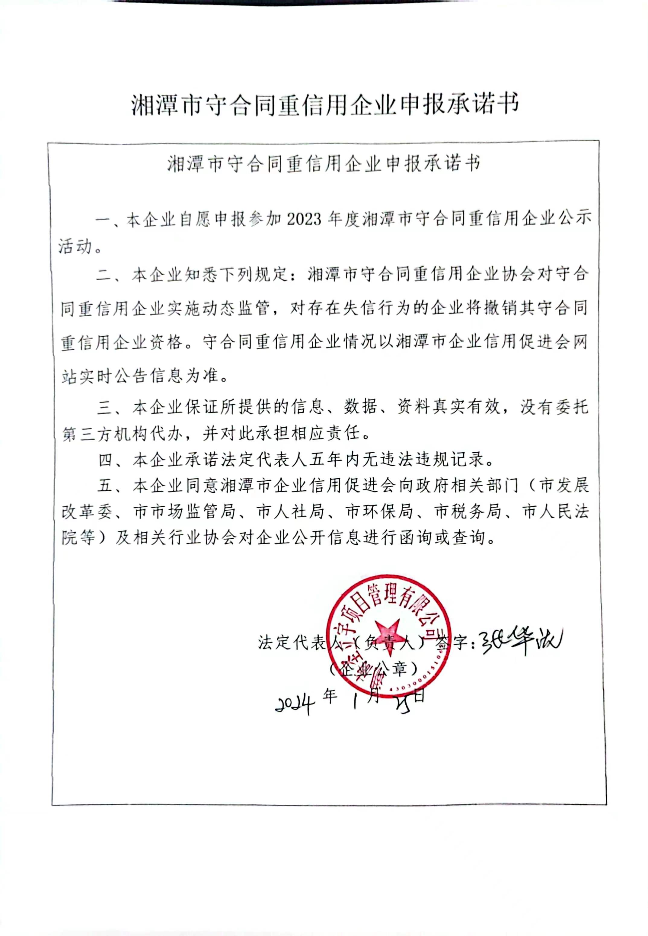 本企業(yè)根據(jù)《湘潭市守合同重信用企業(yè)申報規(guī)定》等編制 2023 年度企業(yè)信用報告書,并保證本報告書內容真實、準確、完整。