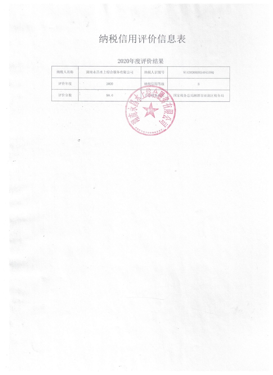 企業(yè)納稅信用等級報告: