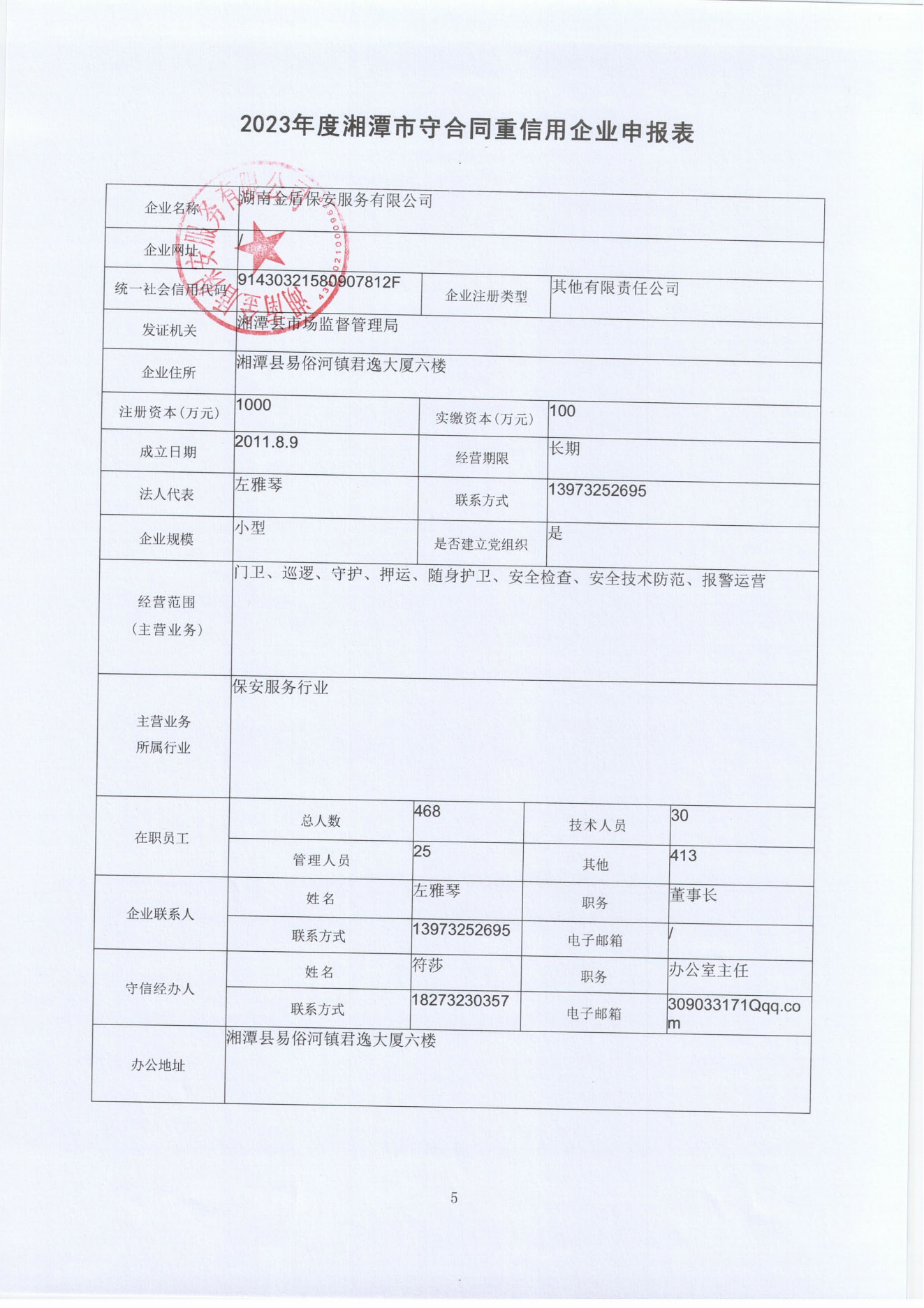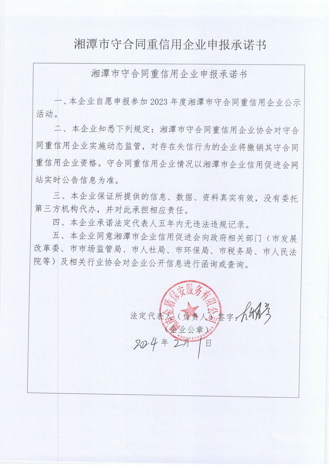 本企業(yè)根據(jù)《湘潭市守合同重信用企業(yè)申報規(guī)定》等編制 2023 年度企業(yè)信用報告書,并保證本報告書內(nèi)容真實、準確、完整。
